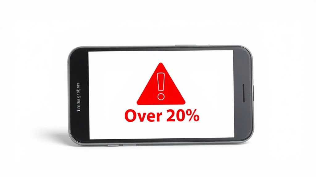 <AI 작성 이미지: 스마트폰 화면에 '이자 계산기' 어플이 켜져 있고, 화면에 빨간색 경고 표시로 '20% 초과'가 떠 있는 모습.>
